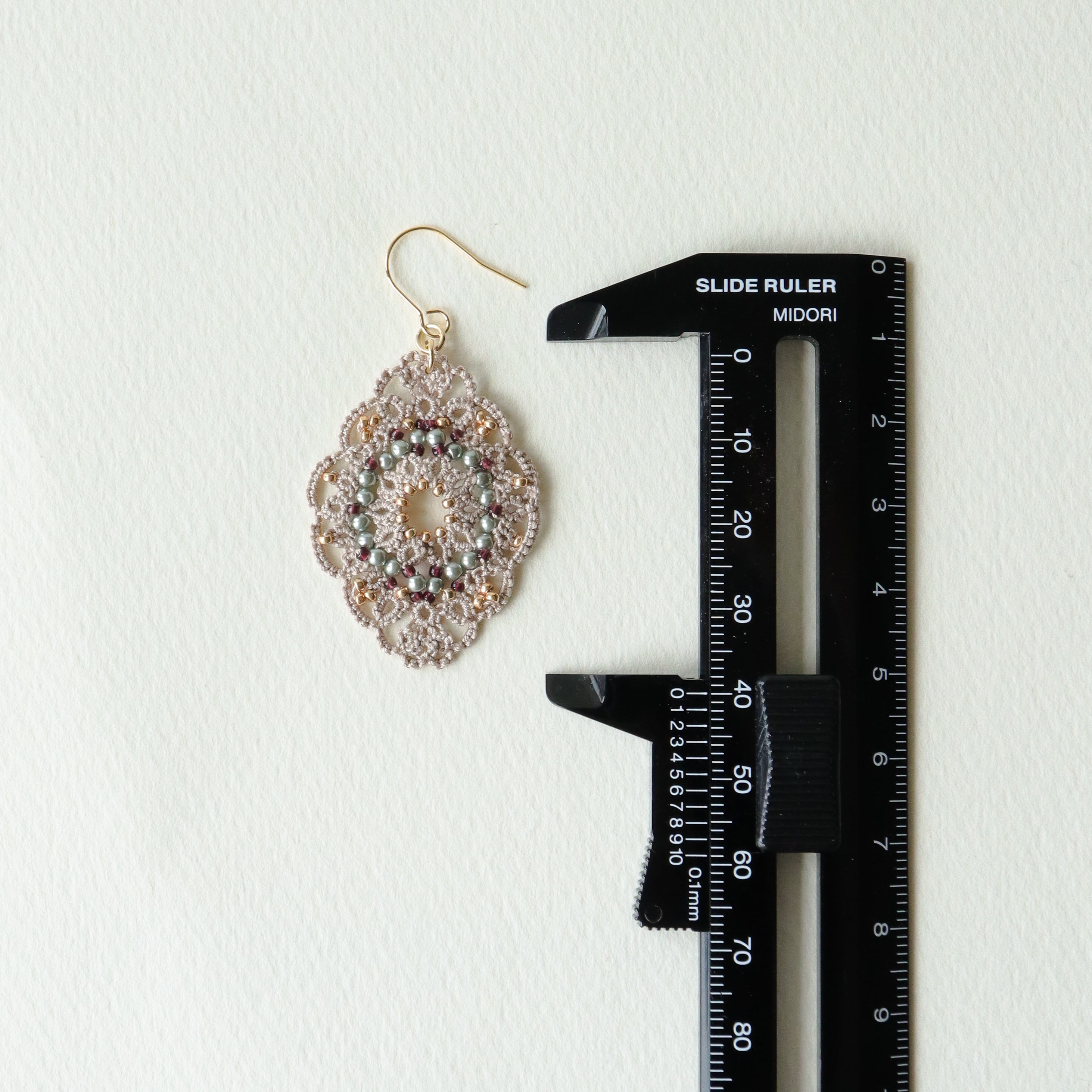 タティングレースとビーズのピアス Oval<オーバル> Greige ※イヤリングに変更可