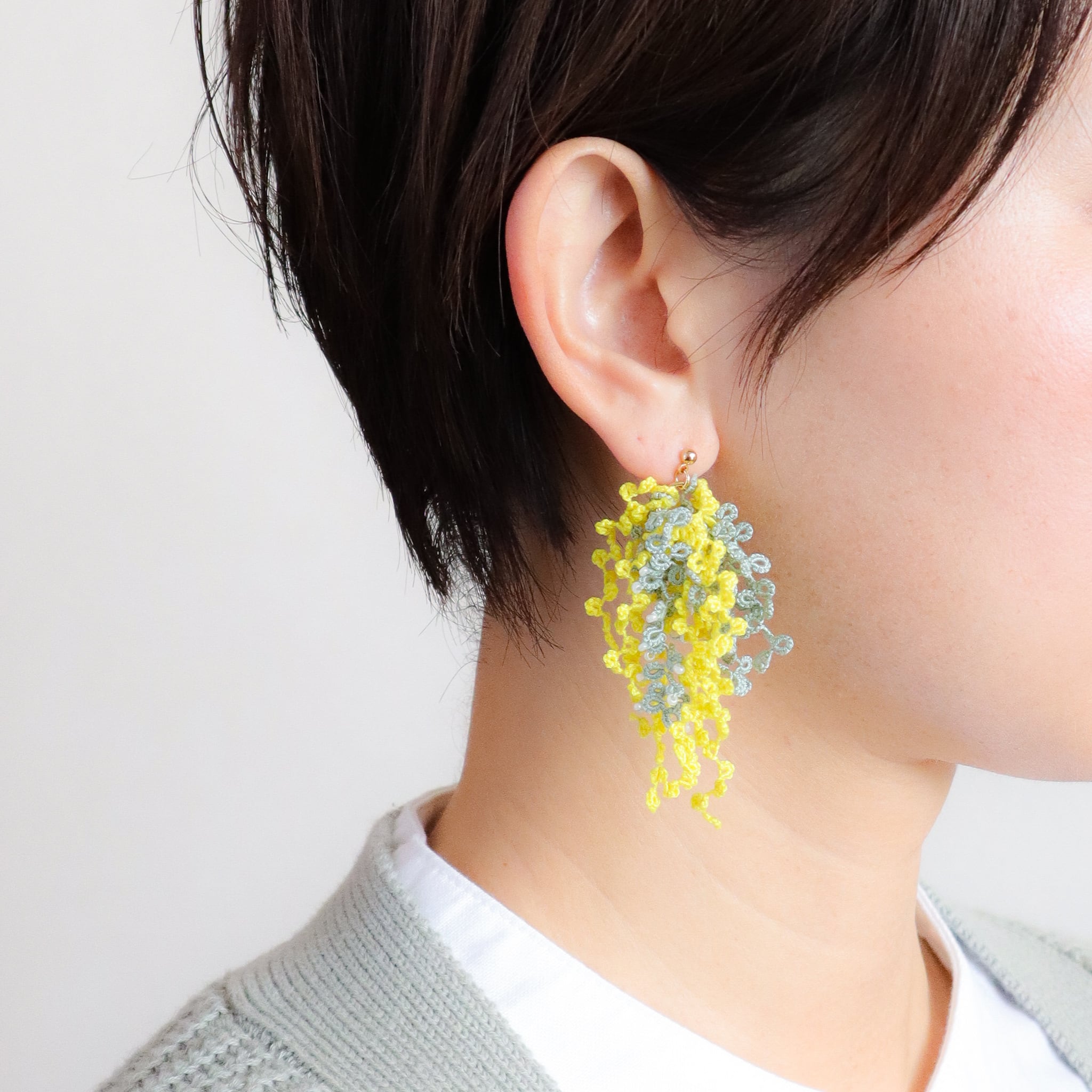タティングレースとビーズのピアス Fluffy<フラッフィー>Mimosa ※イヤリングに変更可