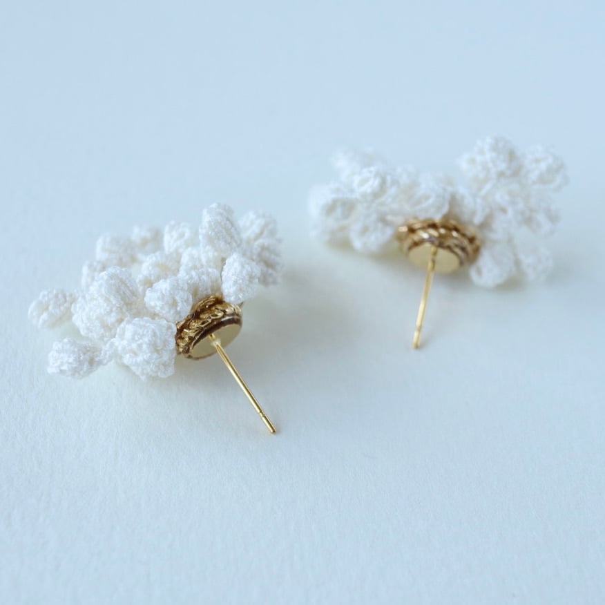 タティングレースのピアス Spice Shower<スパイスシャワー>Ivory ※イヤリングに変更可