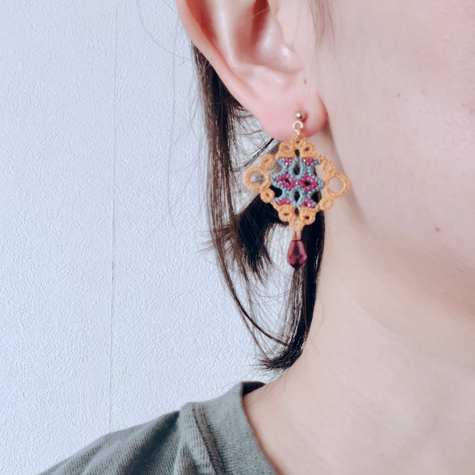 タティングレースのピアス Lamp<ランプ>Mustard × Violet ※イヤリングに変更可