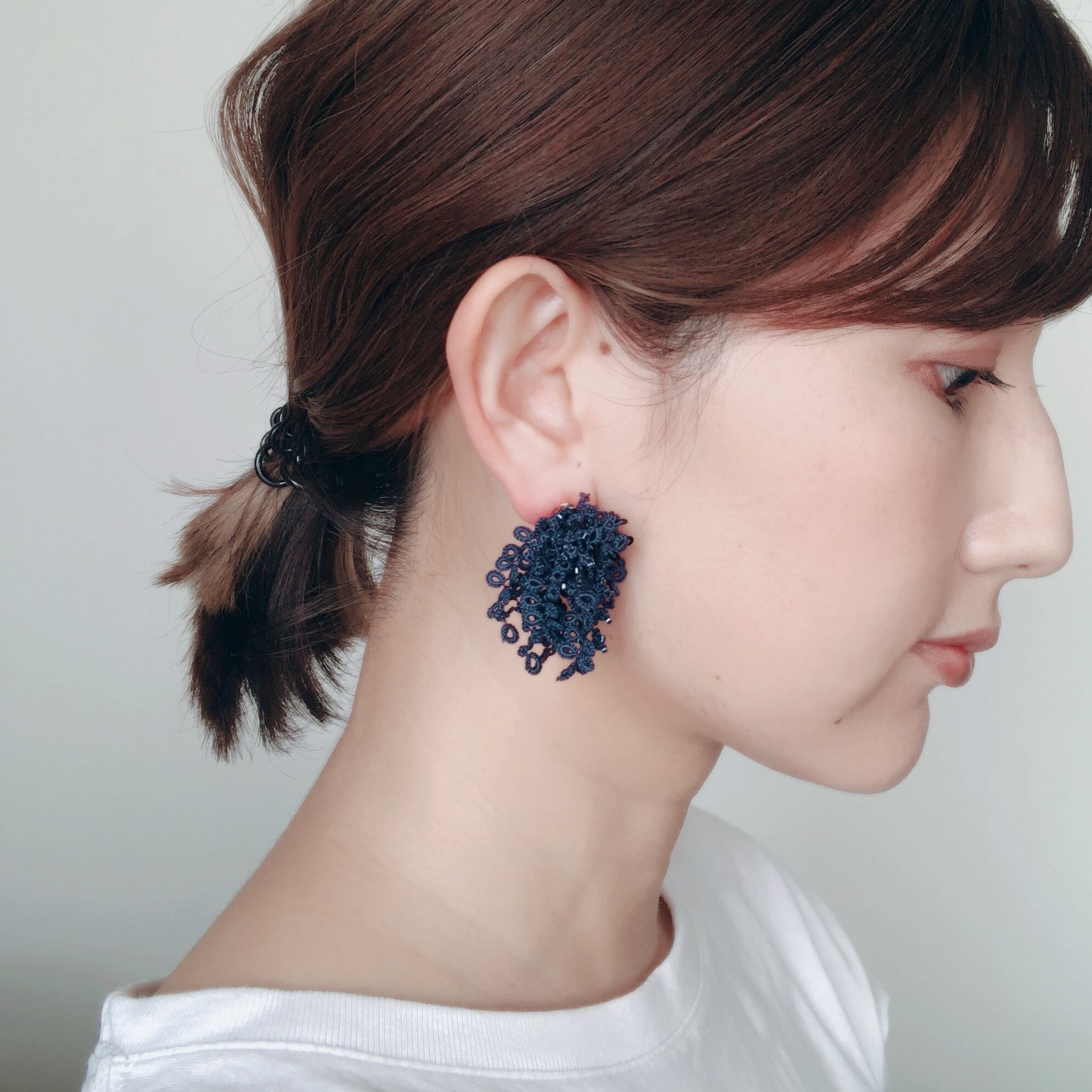 タティングレースのピアス Fluffy fit<フラッフィー フィット>Navy ※イヤリングに変更可