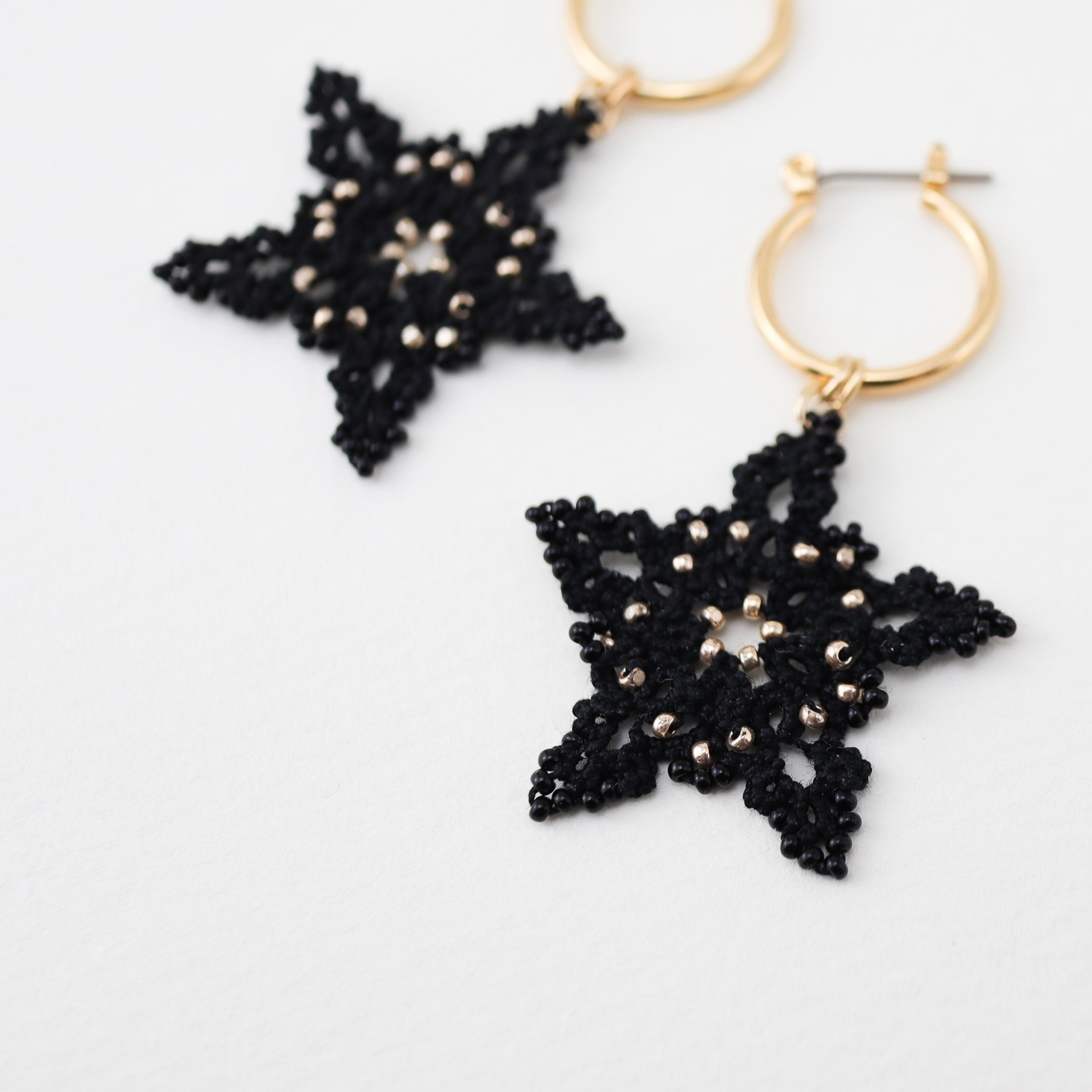タティングレースとビーズのピアス the First Star<ザ・ファーストスター> Black ※イヤリングに変更可