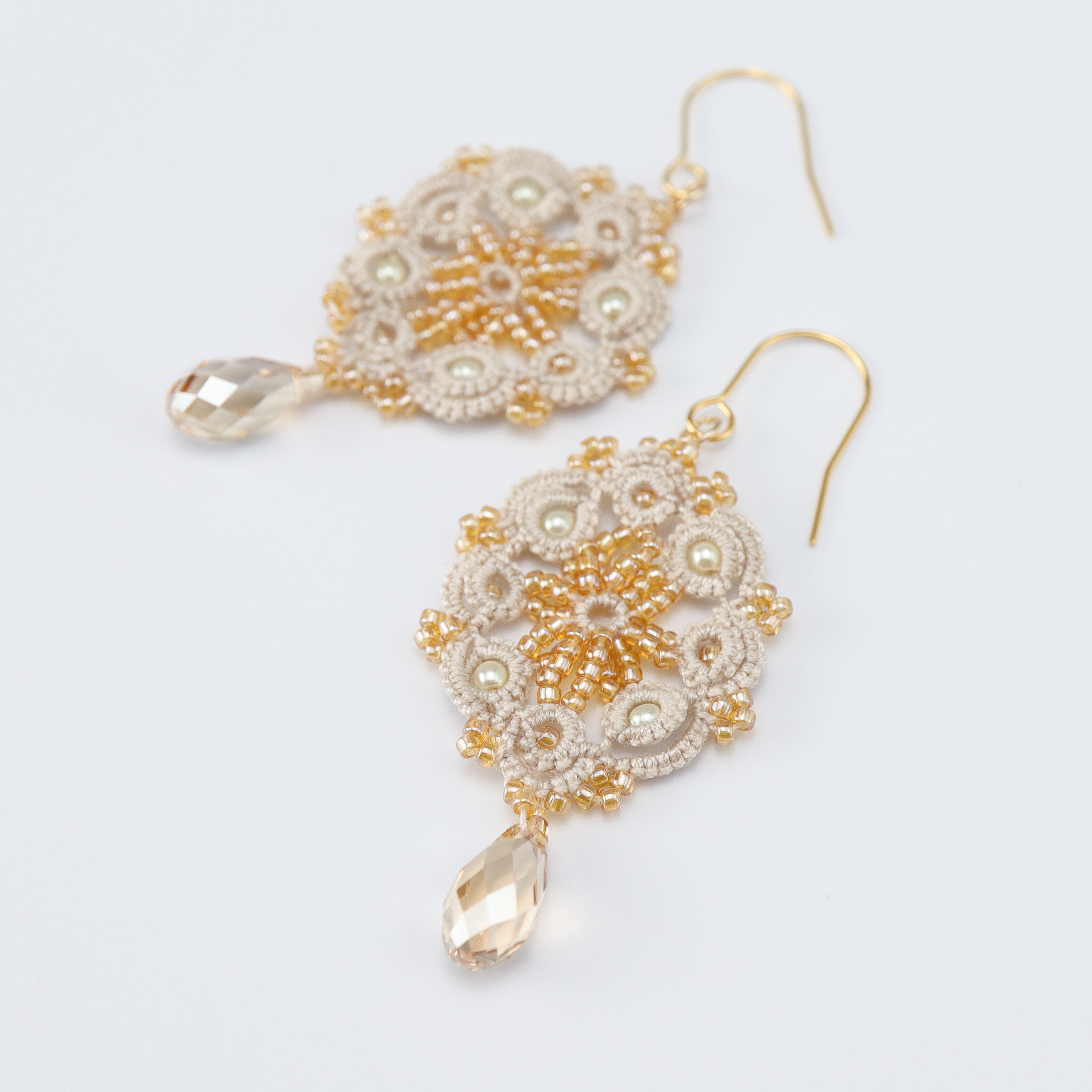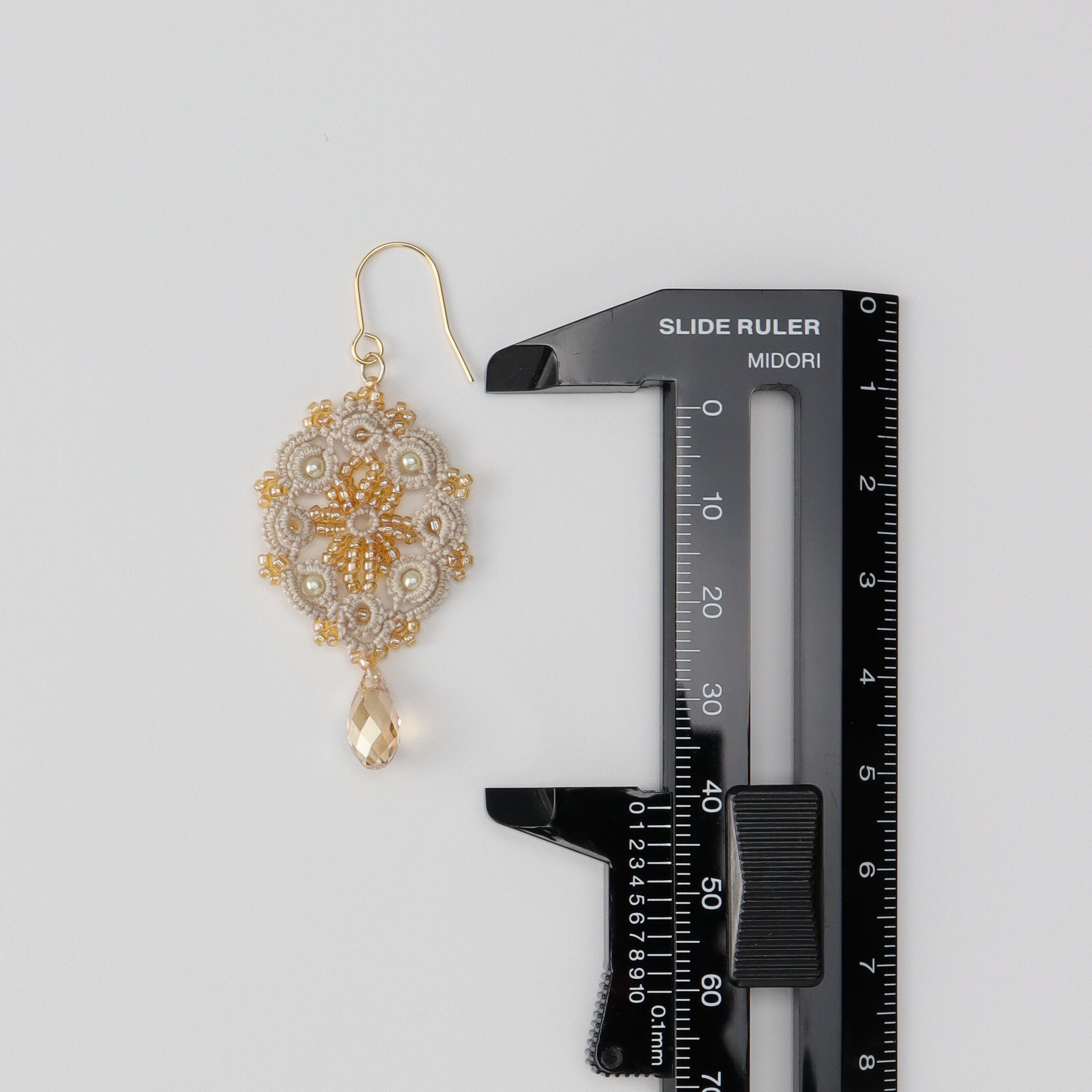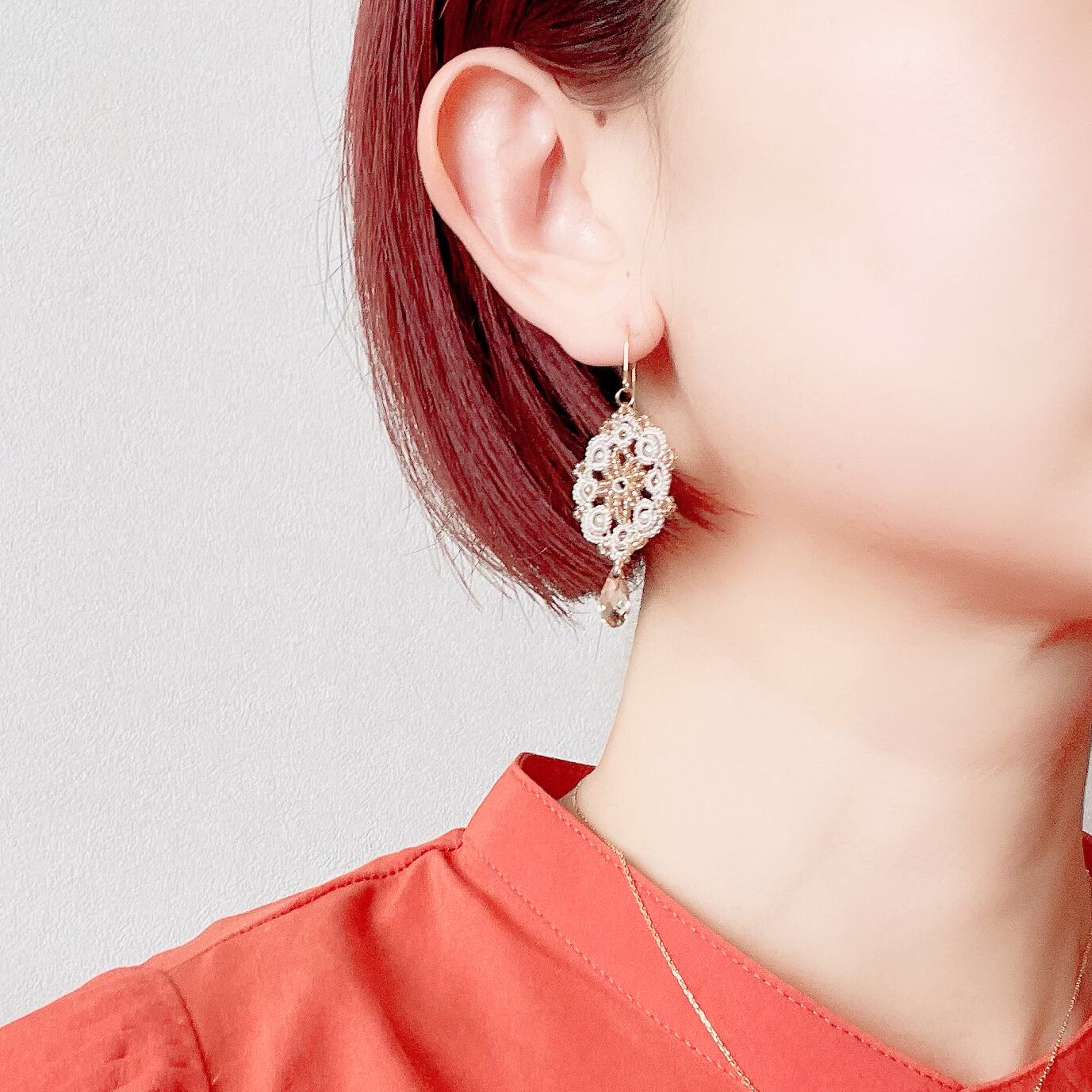 タティングレースとビーズのピアス Deco<デコ> Beige ※イヤリングに変更可